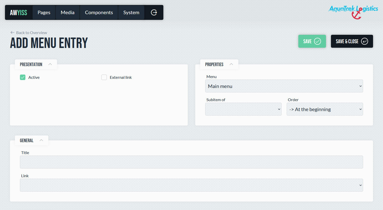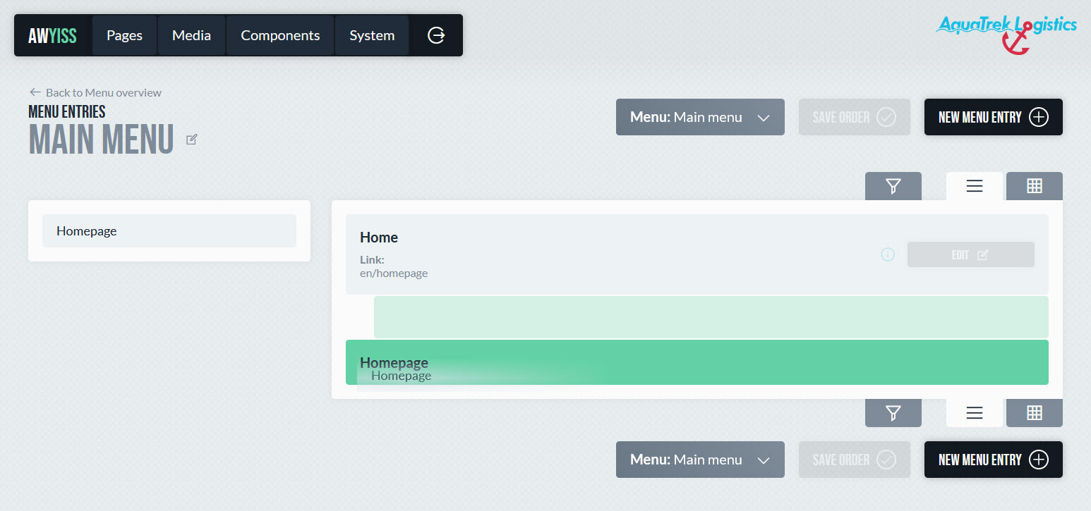 In Awyiss können Menüs zentral verwaltet und frei strukturiert werden. Sie dienen dazu, Navigationsstrukturen einer Website abzubilden – etwa Hauptnavigationen, Fußzeilenmenüs oder für Verlinkungen zu Social Media Kanälen. Ein Menü besteht aus einzelnen, sprachspezifischen Einträgen, die auf Seiten, externe Links oder andere Inhalte verweisen und in beliebiger Hierarchie angeordnet werden können.