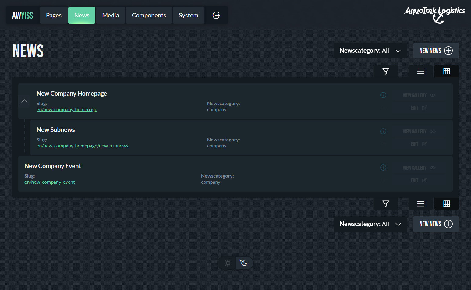 Die Benutzeroberfläche von Awyiss bietet verschiedene Möglichkeiten, das Backend optisch und funktional an die eigene Arbeitsumgebung anzupassen. Ein eigenes Login-Logo kann hinterlegt werden, um das System an ein Projekt oder eine Marke anzulehnen. Zudem steht ein Dark Mode zur Verfügung, der für eine angepasste Darstellung bei unterschiedlichen Lichtverhältnissen sorgt.